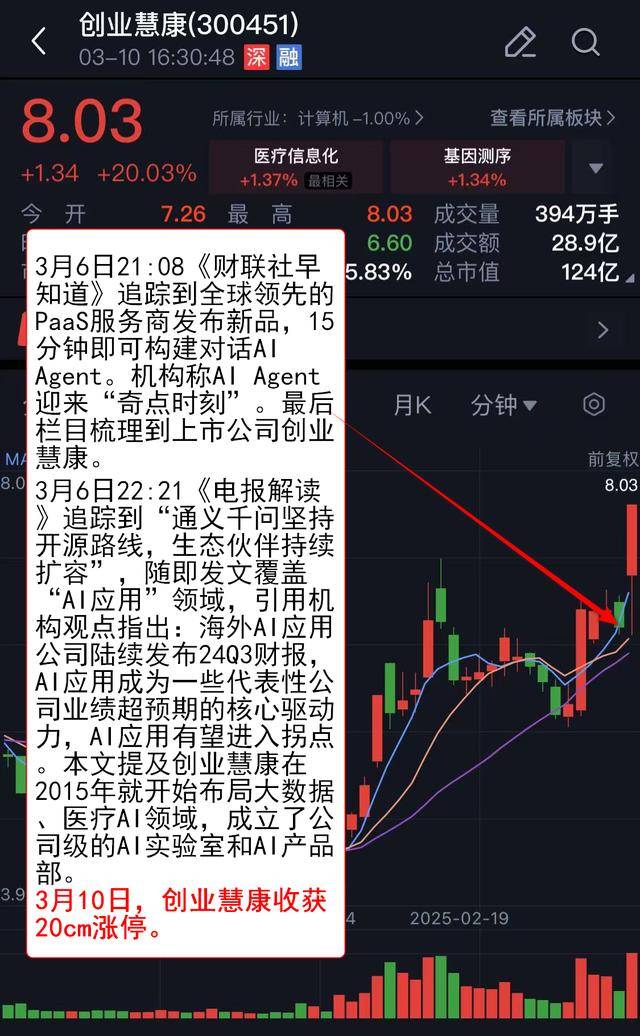 3月6日21:08《早知道》 追踪到全球领先的PaaS服务商发布新品,15分钟即可构建对话AI Agent。机构称AI Agent迎来“奇点时刻”。最后栏目梳理到上市公司创业慧康。