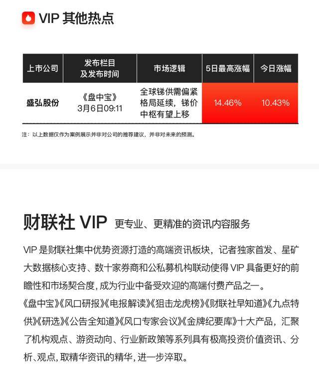 注:VIP为内容资讯产品,并非投资建议。以下内容仅为资讯价值展示非对相关公司的推荐建议,非未来走势预测。投资有风险,入市需谨慎。