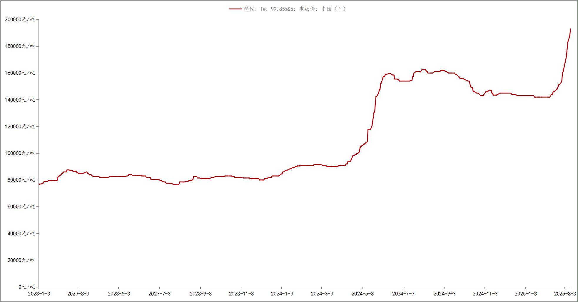 需求端,中金有色团队认为国内家电等领域用阻燃剂正值采购旺季。新能源上网电价市场化改革有望推动光伏玻璃日熔量企稳回升。内外需共振且锑矿进口量收缩,国内锑价创历史新高。上海钢联数据显示,3月11日国内1号锑锭价格为19.3万元/吨,相较于2023年年初已上涨152.3%。
