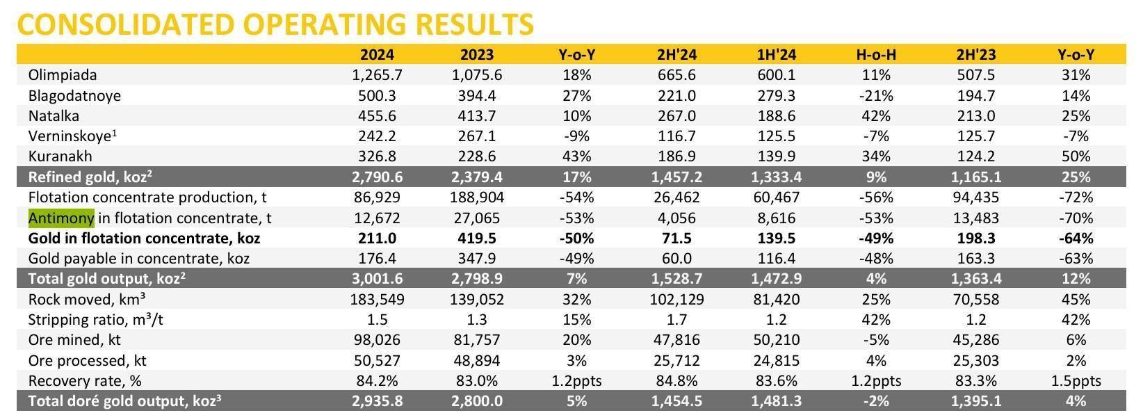俄罗斯矿商极地黄金近期发布的2024年运营公报显示,2024年公司锑产量为12672吨,同比减少53%。其中2024年下半年锑产量为4056吨,同比、环比分别减少70%、53%。