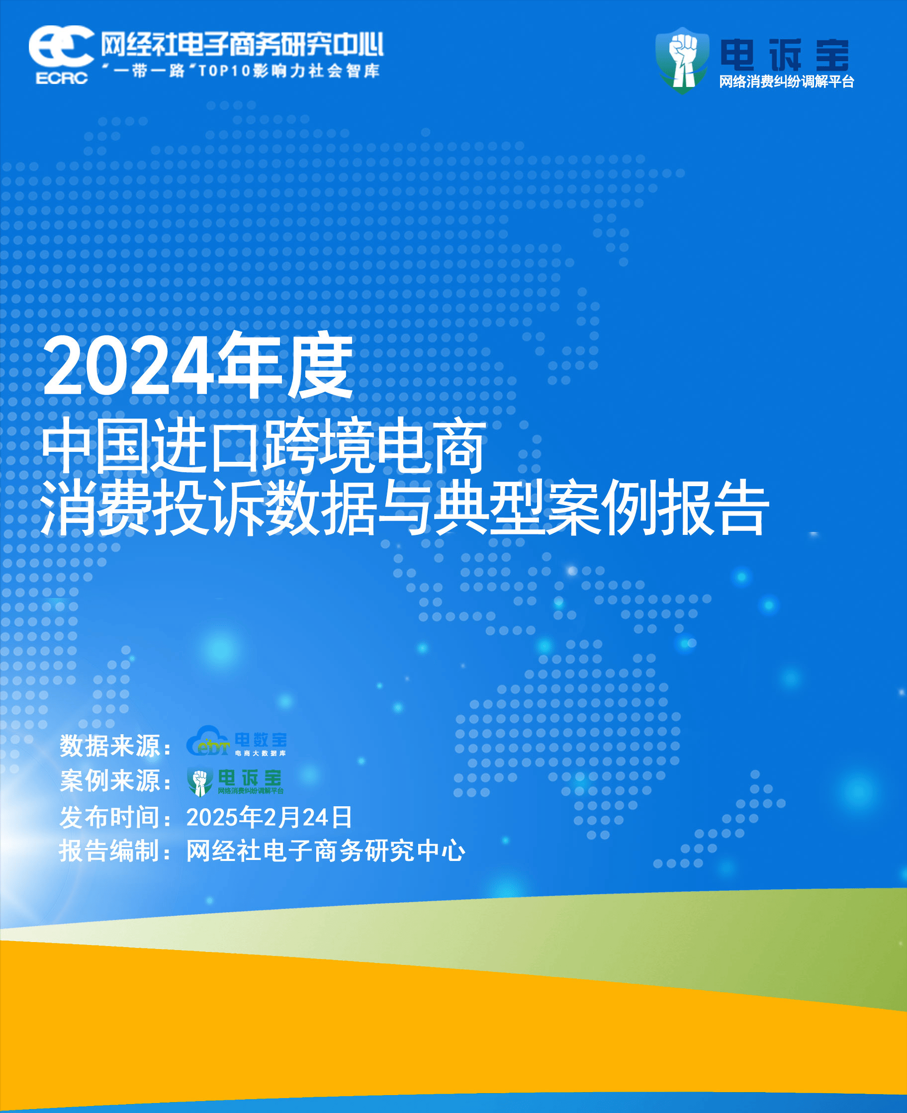 2月24日,依据国内知名网络消费纠纷调解平台“电诉宝”2024年全年受理的全国12家进口跨境电商平台纠纷大量案例数据,“丝路电商产教融合国际共同体”创始单位、“一带一路TOP10影响力社会智库”、“中国跨境电商50人论坛”副秘书长单位——电子商务研究中心例行发布《2024年度中国进口跨境电商投诉数据与典型案例报告》。