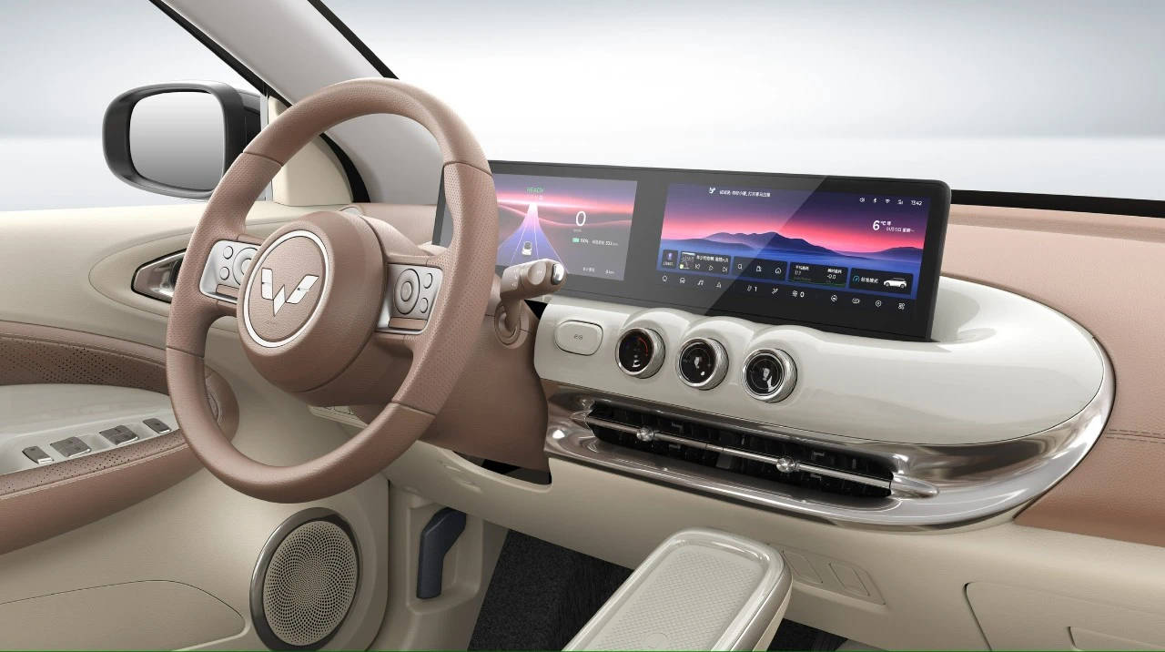 内饰方面,2025款五菱缤果改用时下流行的怀挡设计,引入悬浮式中央扶手并集成双杯架和手机放置槽,中央通道下层则设置有开放式储物空间。除此之外,2025款五菱缤果在保留“果壳棕”内饰配色的基础上,新增“焦糖咖”内饰配色给用户选择。