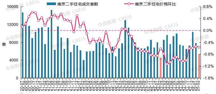 价格方面,2月,南京二手住宅价格环比下跌0.56%,跌幅较上月基本持平。