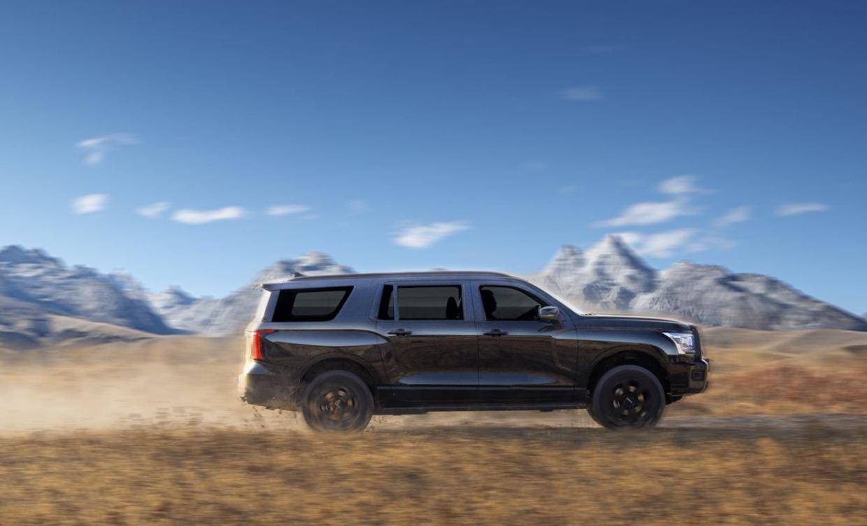 全系车姿升高,长宽高为5190*1905*1864,配备黑化套件,行李架、前格栅、轮毂、水切都采用了黑化设计,整体车姿更加霸气,得益于车姿的升高,通过性得到加强,接近角26°,离去角24°,最小离地间隙(空载)225mm,对长途自驾中国道烂路,碎石路,土路,泥泞路,AT胎和更高的离地间隙都能让司机更加游刃有余;