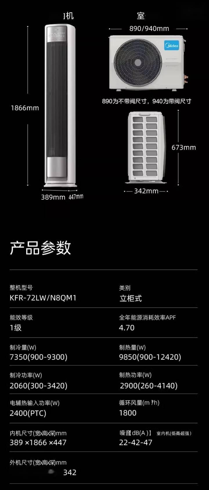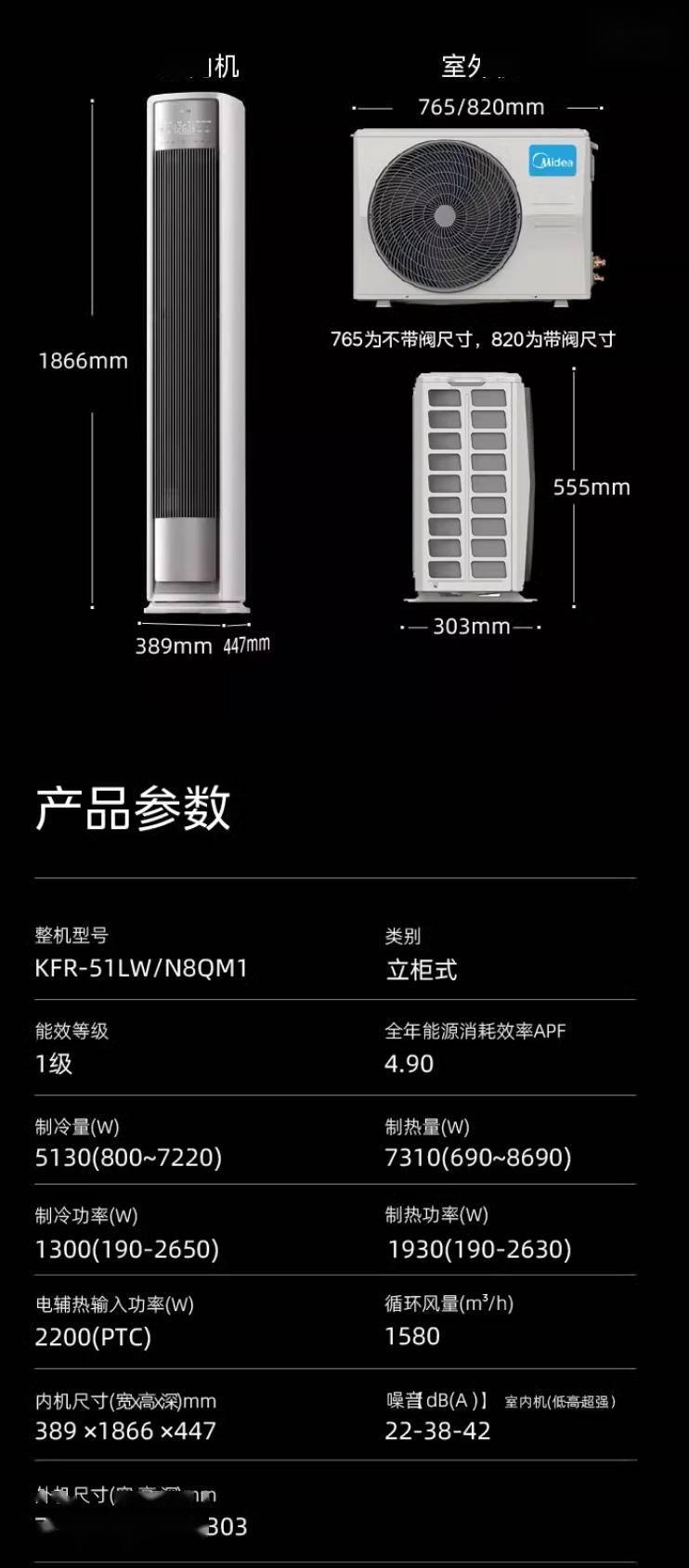 美的全面风空调 QM1 的 2 匹版本定价 6999 元,首发价 5499 元,现已在天猫开售。附参数表如下: