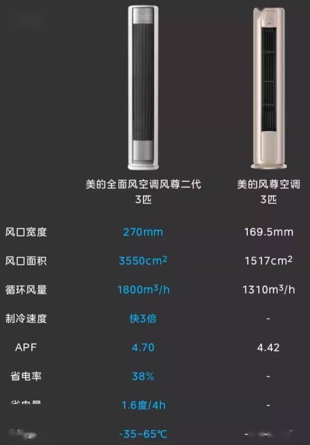 该空调名为“美的全面风空调风尊二代”,可选 2 匹和 3 匹版本,风口宽度可达 270mm,风口面积可达 3550cm²。