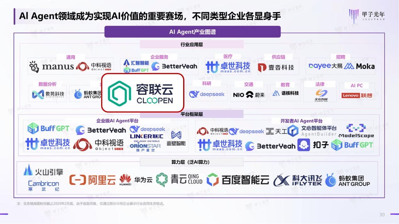 容联云凭借卓越的Copilot & Agent产品和解决方案,以及在银行、保险等领域的成熟应用验证,成功入选AI Agent产业图谱,成为企业级智能体赛道的标杆服务商。