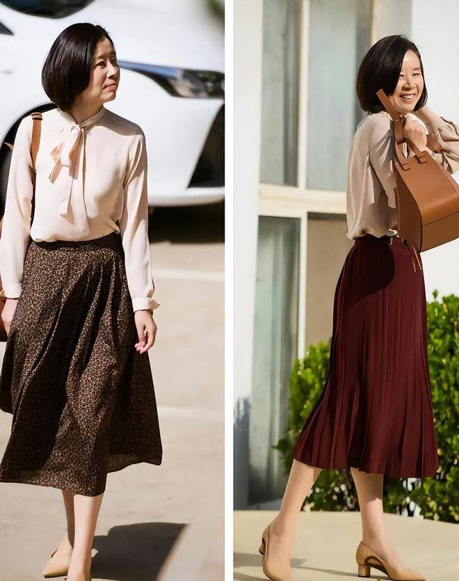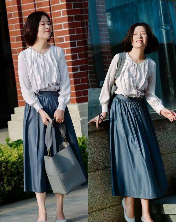 并且像这种过膝裙穿上身会显得比较的高级得体,再加上露出了我们的脚踝,这样的裙子穿上身也显得更轻盈,高跟鞋的搭配,更是能直接延长我们的身材比例,显得腿又长又细,这对于小个子女人来说也太友好了。