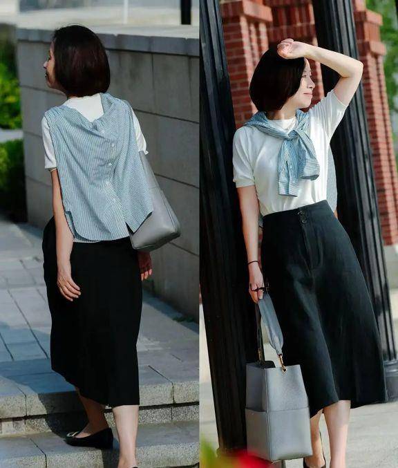 下半身的直筒裙也能够凸显出一种比较利落的氛围,而这样的单品组合对于个人气质的提升效果也很强,就算是小个子也可以穿出大长腿。