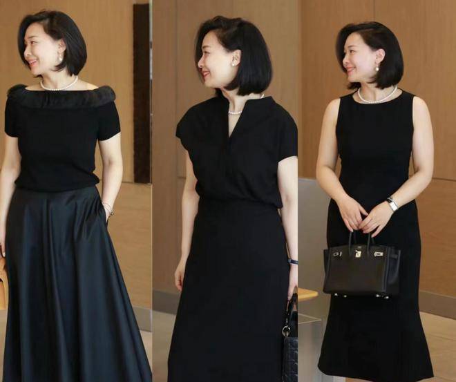 中年女性要选对适合自己的单品,在搭配服饰的时候,要更加注重整体的协调性。有一种方案可以减轻日常的穿衣难度,不如准备一条黑色半身裙,几乎搭配所有的上衣都会很合适。