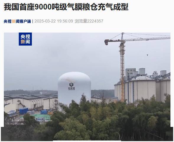 报道提到,气膜仓体高度达 33 米,直径 24 米,可储存粮食 9000 吨,仓容比前代技术提升 20%,这也是我国储粮仓又一次迭代升级。