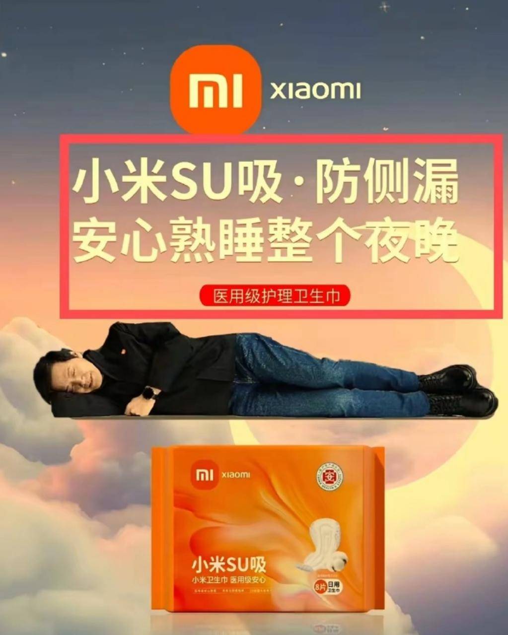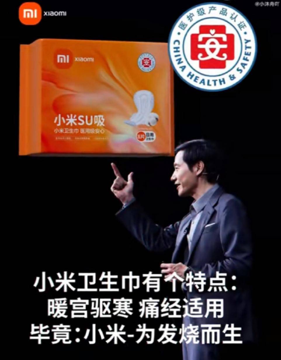 315晚会上,也曝光了问题卫生巾,所以雷军许愿池,期待小米做卫生巾的呼声就更高了,网络上也有各种热梗和热图,甚至天才的网友小米如果做卫生巾,海报口号品牌都给设计好了,网友直接命名叫做小米SU吸,小米卫生巾有个特点,暖宫驱寒,痛经适用,毕竟:小米为发烧而生。