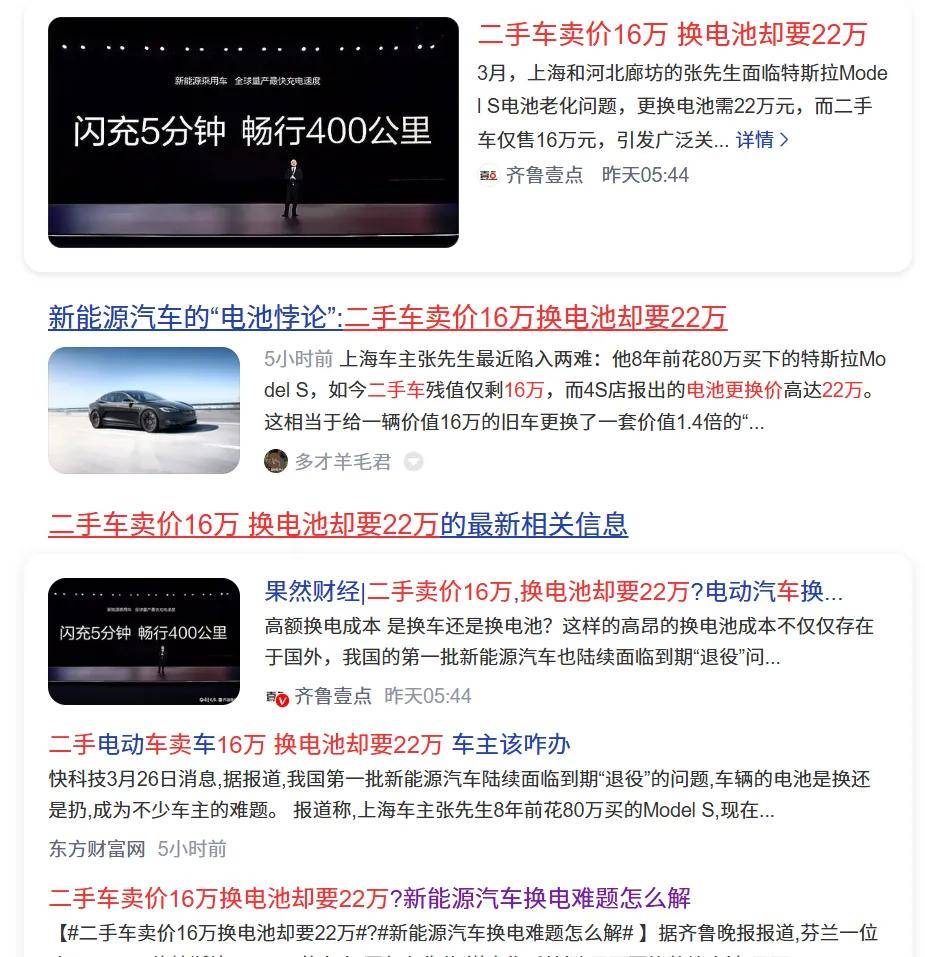其实关于二手车卖价低于换电池价格这件事早已经不是什么新闻了,起因是一位上海车主张先生8年前花80万买的Model S,现在换电池就要22万,而作为二手车出售才卖16万!不知道为什么最近这件事又冲上了热搜,猜测可能是戳中了更多新能源汽车车主的痛点吧,那么这个问题有办法解决吗?实话实说毫无办法!
