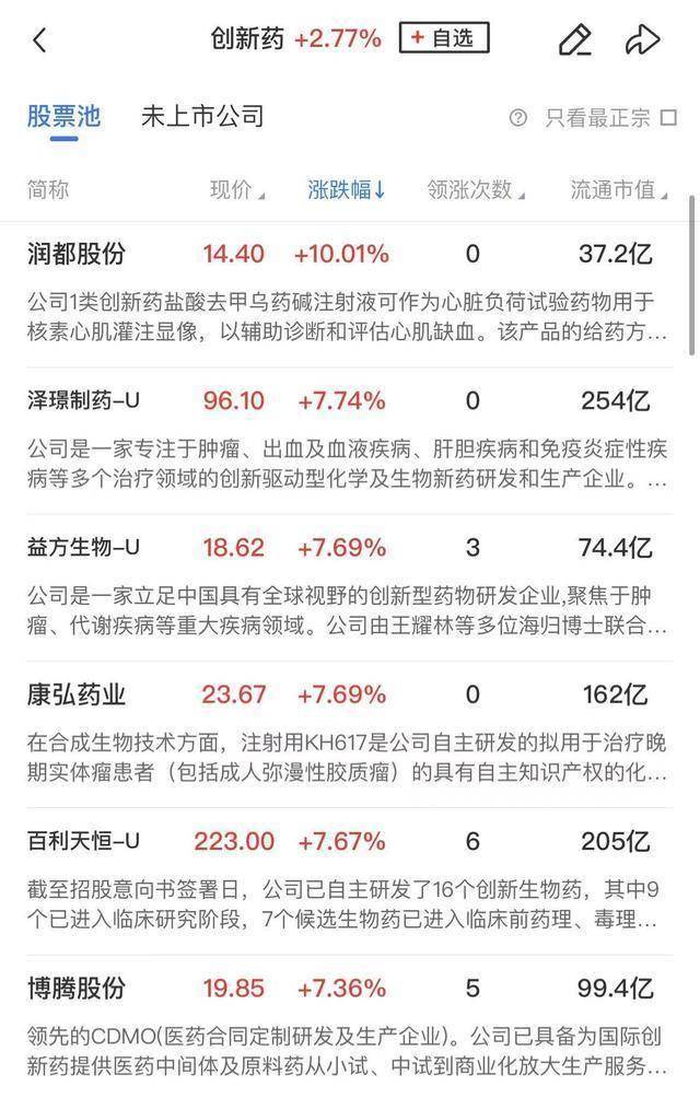 创新药板块同样在盘中活跃,润都股份涨停,迪哲医药、泽璟制药、益方生物、康弘药业、百利天恒等个股涨幅居前。