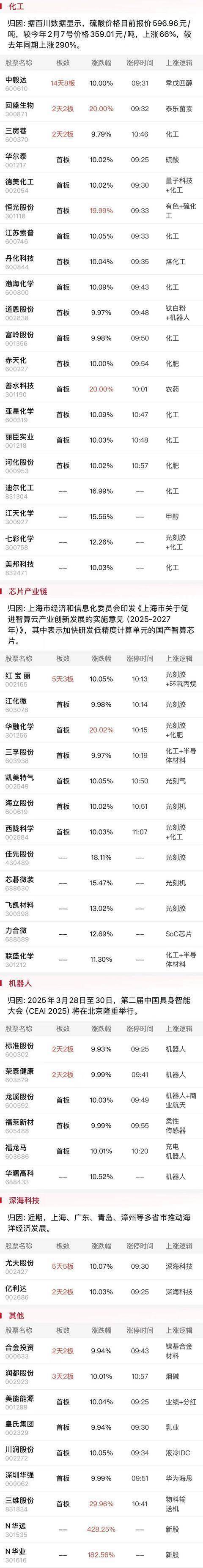 板块上,化工股持续走强,中毅达4连板,江天化学20CM3连板,此外、华融化学、善水科技、渤海化学、红宝丽、丹化科技等个股涨停。