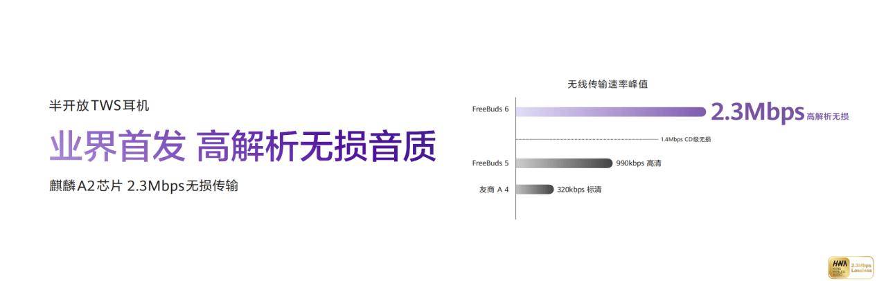 音质方面,华为 FreeBuds 6 悦彰耳机同样有出色品质。它是业界首款半开放式悦彰耳机,采用了双单元设计,新增高音单元,内部架构采用三分离设计,确保各频段声音清晰分离。搭配麒麟 A2 芯片、星闪连接核心技术 polar 码和华为自研 L2HC 4.0 无损编解码协议,可实现 2.3Mbps 高解析无损传输,在升级至 HarmonyOS 5 的华为旗舰手机支持下,最高可呈现 48kHz / 24bit 音质,还获得 HWA Lossless 及 Hi-Res Wireless 双高清音质认证。这意味着你听到的每一个音符都清晰、细腻,仿佛置身于音乐会现场,让你高低听上头。