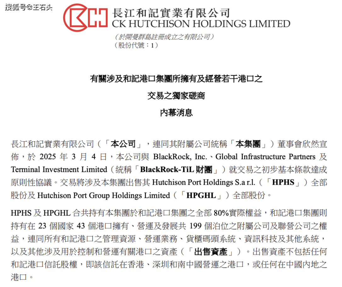 此前,李嘉诚旗下长和集团对港澳办及《大公报》的警示置若罔闻,坚持以228亿美元向贝莱德出售全球43个港口的交易,其中包括巴拿马运河两端的战略港口。