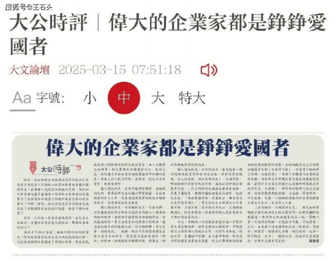 更深层的争议关乎企业家精神的时代内涵,官媒反复强调“伟大的企业家都是铮铮的爱国者”,将商业成功与民族责任紧密捆绑。