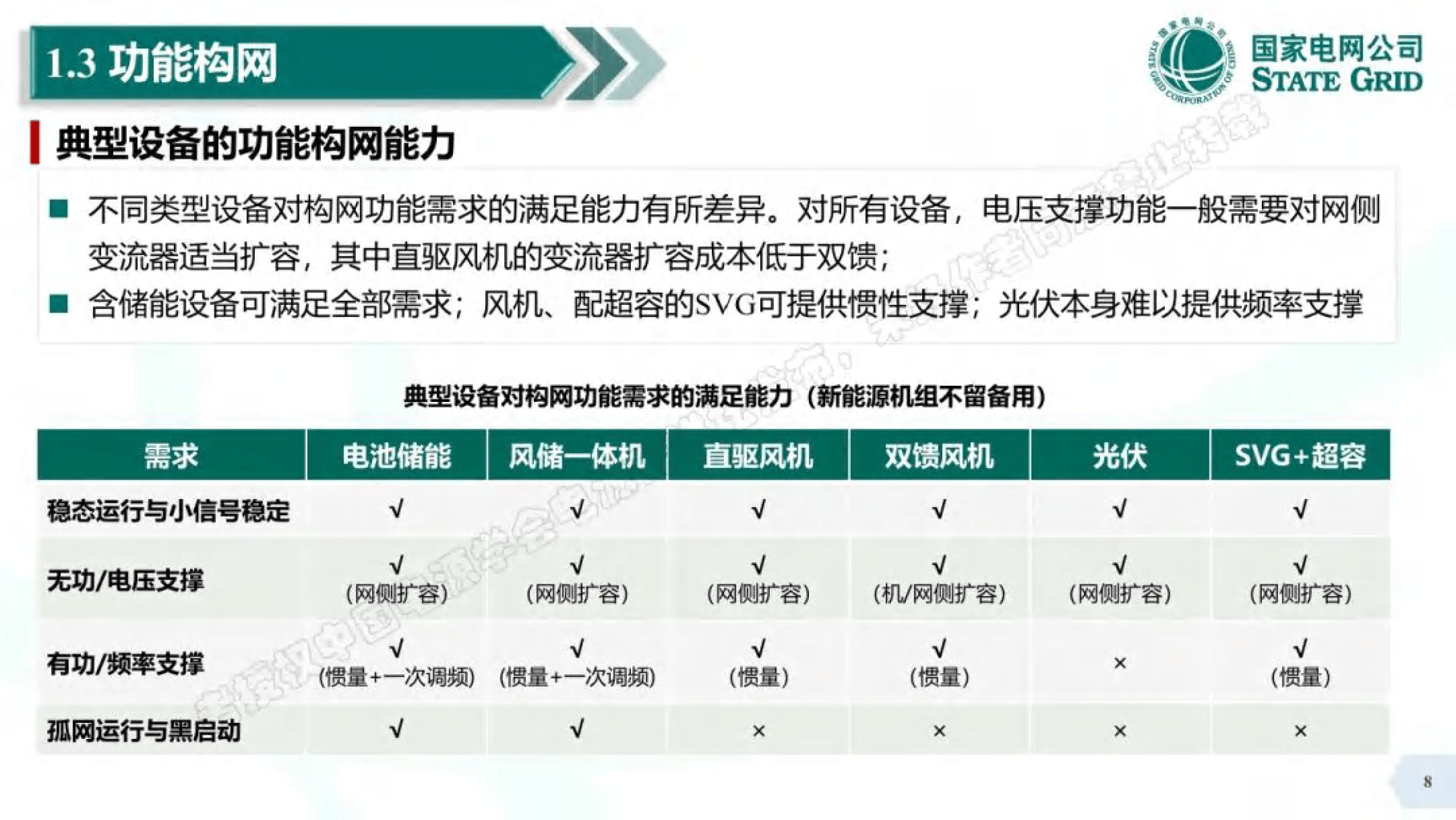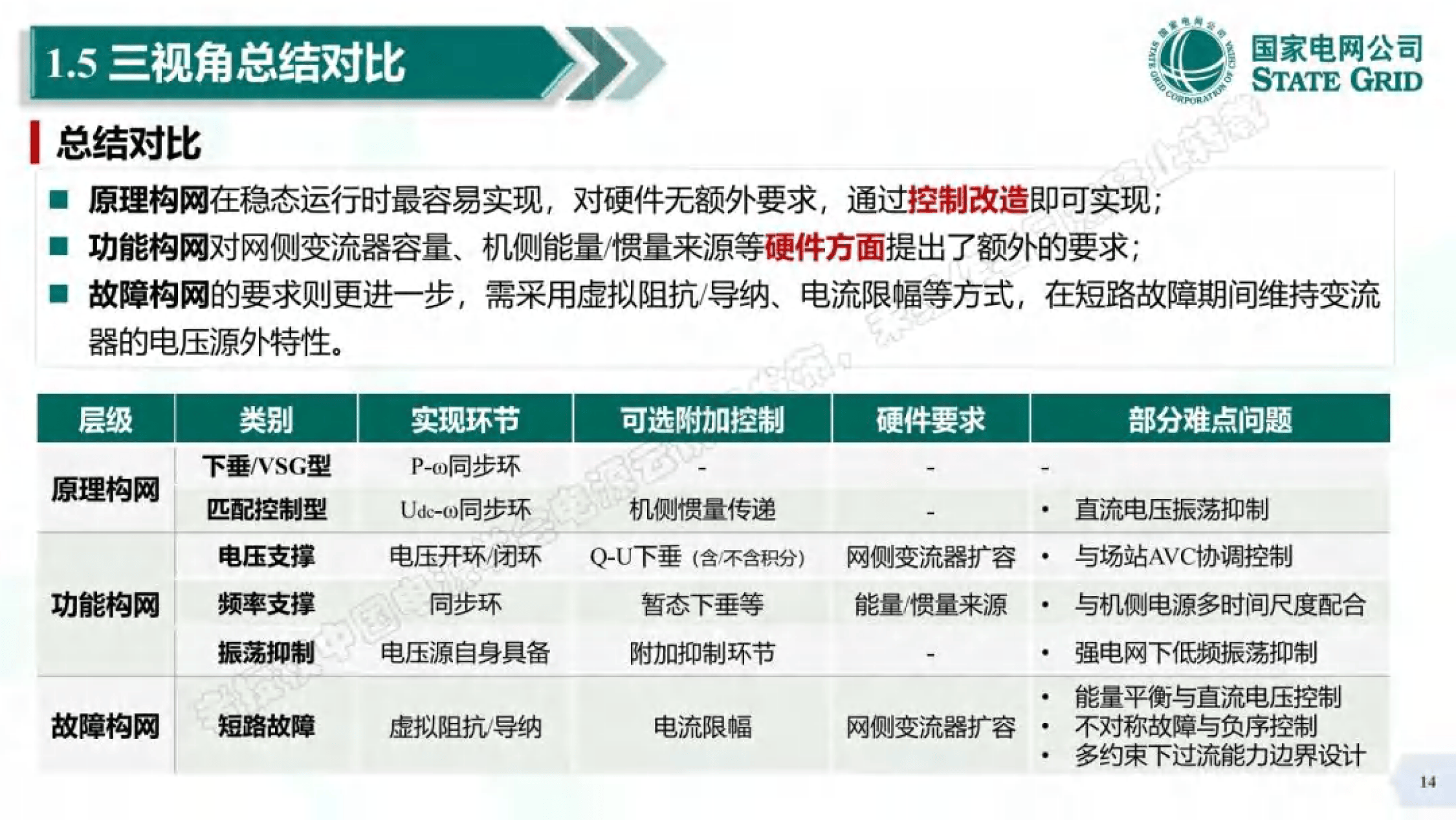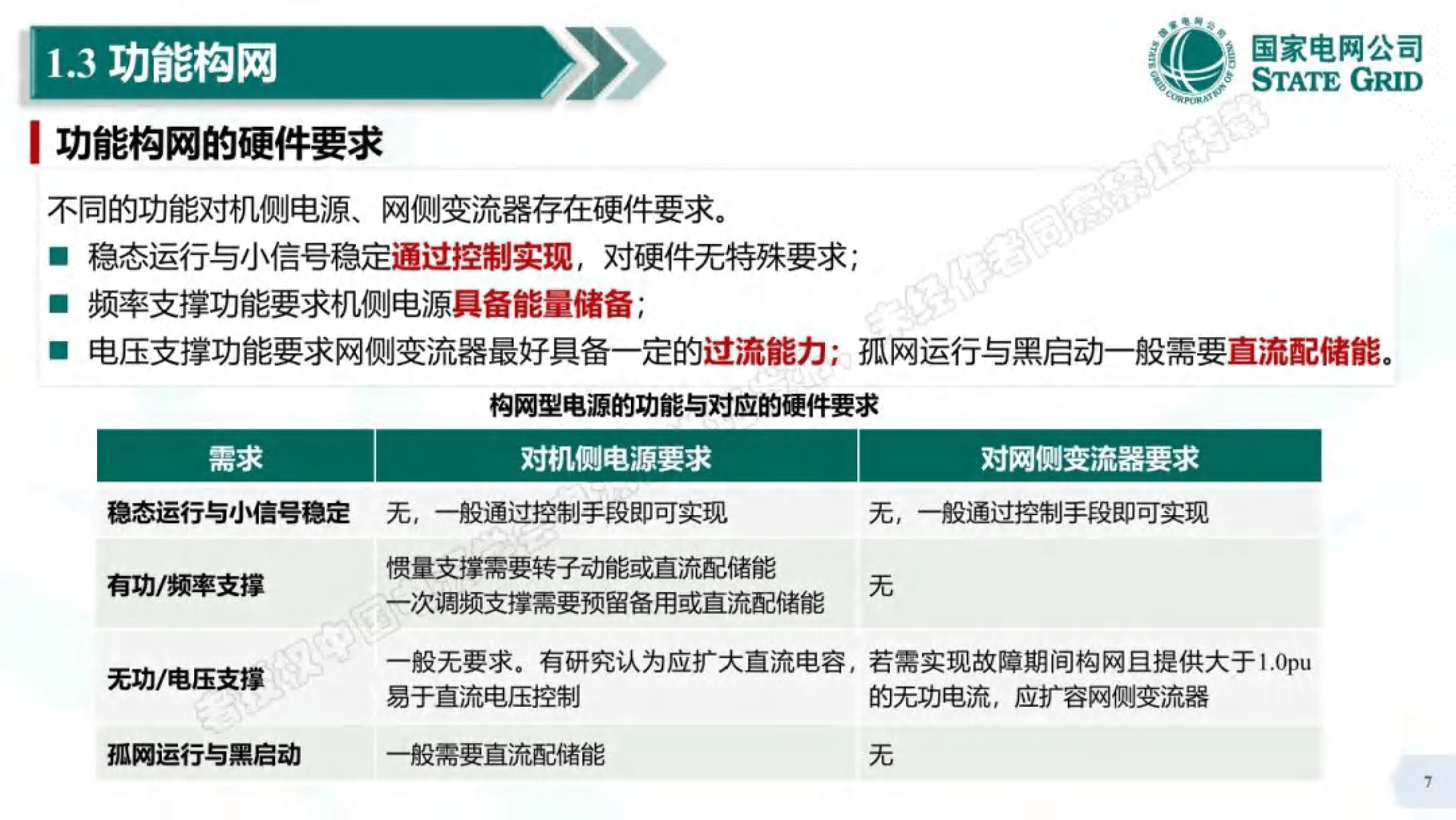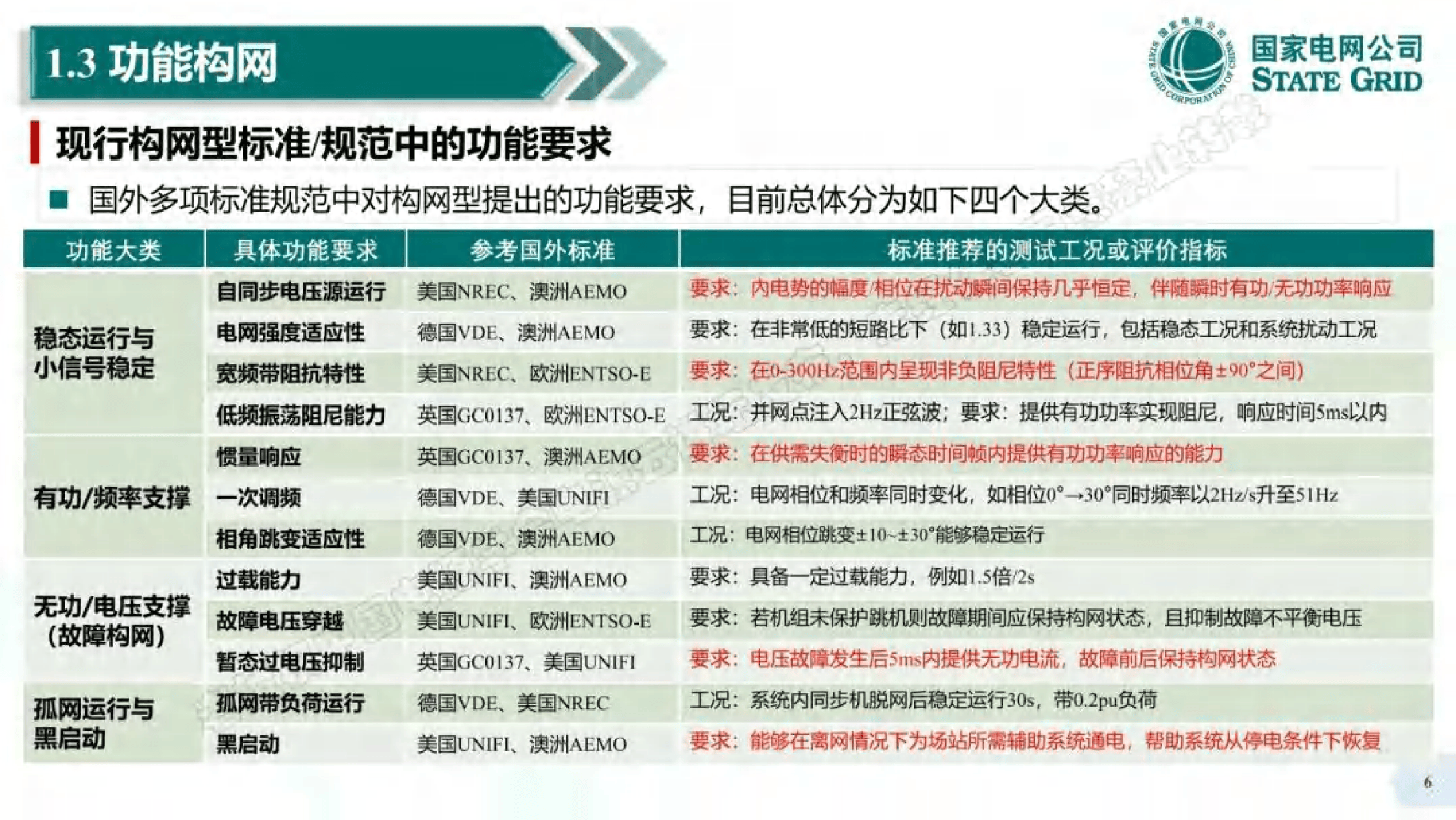 功能构网:国外标准规范对其功能要求分为稳态运行与小信号稳定、电网强度适应性等多个大类。不同功能对机侧电源和网侧变流器有不同硬件要求,如频率支撑需机侧电源储能,电压支撑要求网侧变流器有过流能力 。