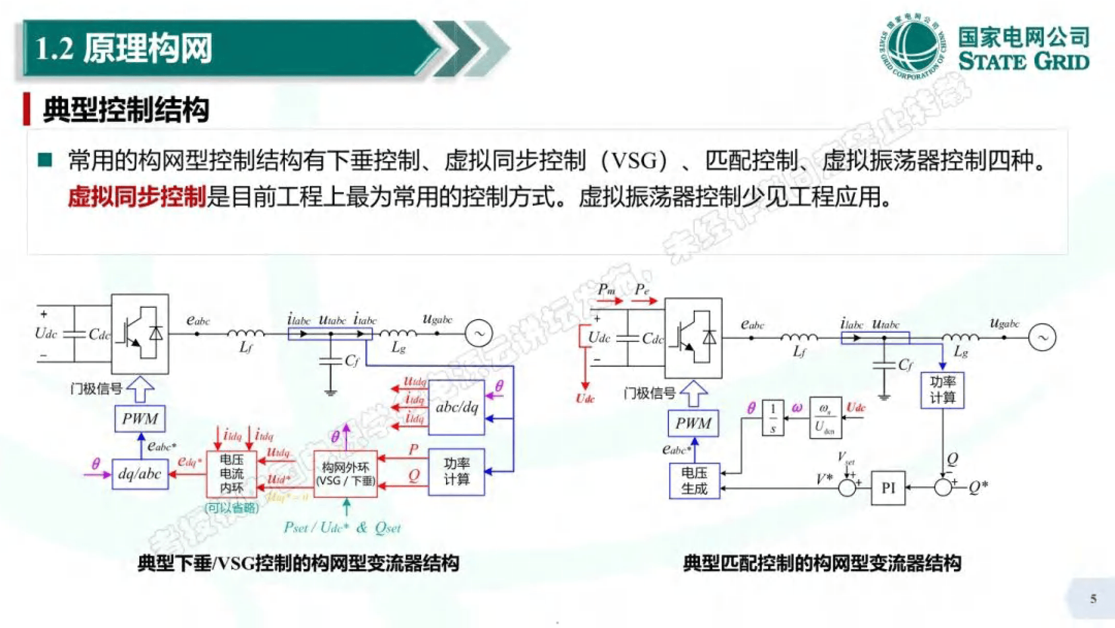 原理构网:控制网侧变流器输出电压,模拟同步机运行。常见控制结构有下垂控制、虚拟同步控制(VSG)等,稳态运行易实现,对硬件无额外要求。