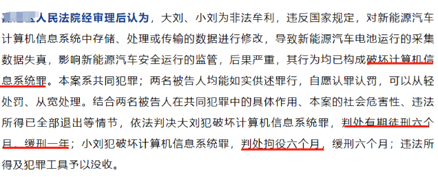 这事究竟咋回事?法院判决书上明明白白写着:两兄弟通过技术手段,修改了新能源车电池管理系统的数据,帮车主"解锁"了被锁住的电池,让趴窝的车又能跑起来了。结果呢?车企A公司直接报警,法院最后认定他们俩构成了"破坏计算机信息系统罪"。