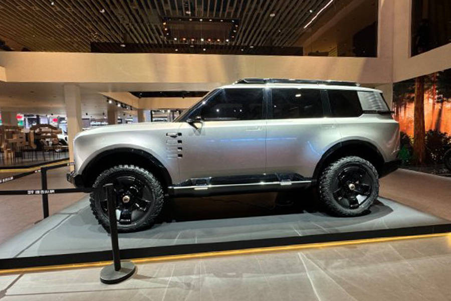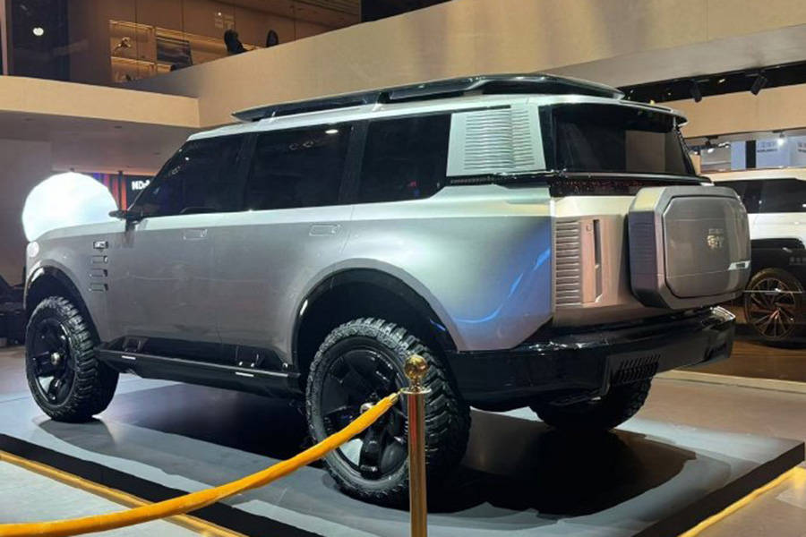 侧面来看,新车的方盒子属性更加明显,车身运用了很多平直和棱角线条,车顶行李架、上车踏板、全尺寸AT胎以及尾部的“小书包”一应俱全,尾部同样有贯穿灯带设计与前脸相互呼应。此外,新车还配有隐藏式门把手、电子外后视镜以及悬浮式车顶。