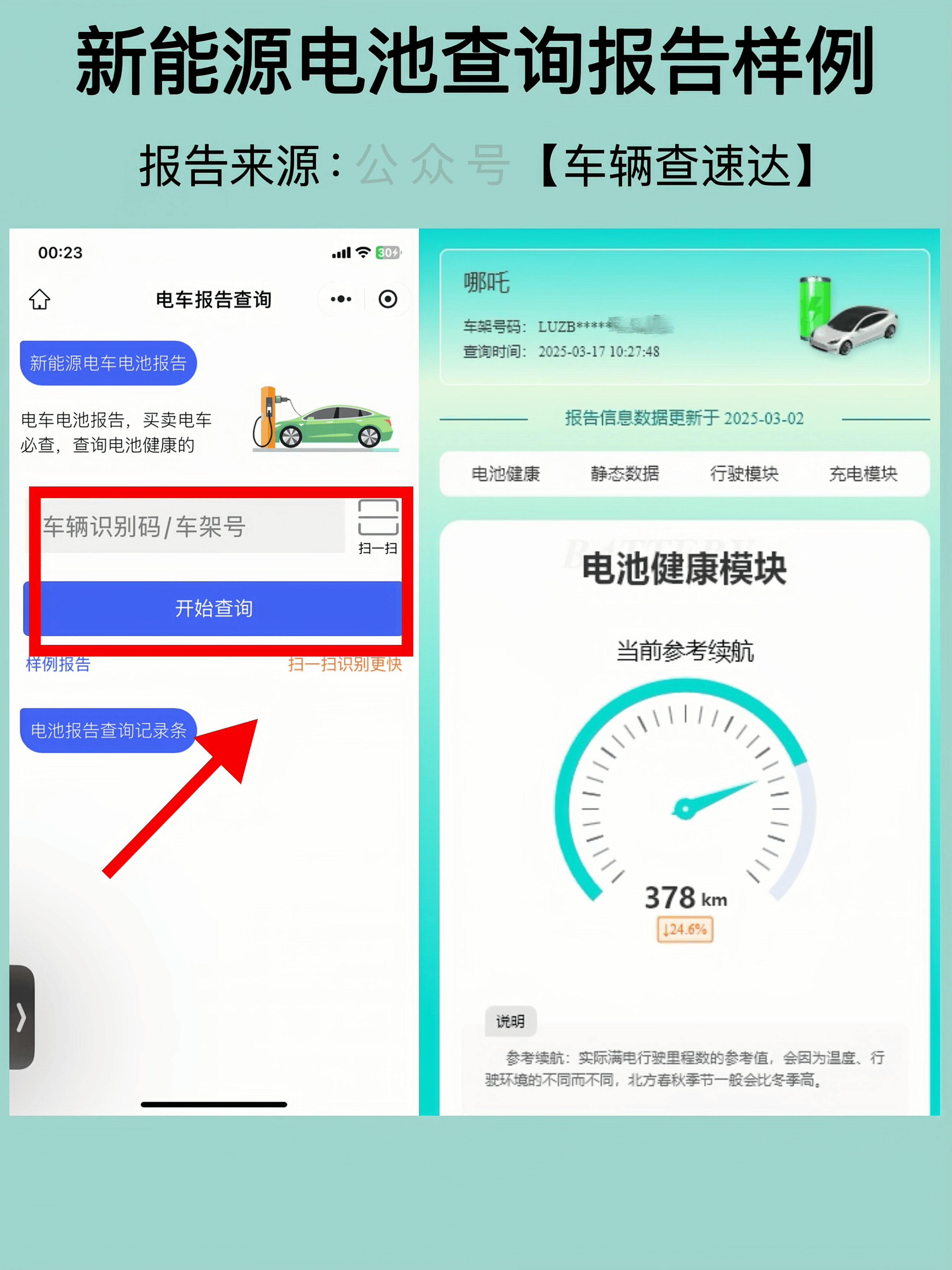 第三种方式最便捷。直接通过公众号查询。关注后点击菜单栏“电池检测”,输入车牌号和车架号后六位,系统最快30秒就能生成完整报告。报告包含电池均衡度、衰减百分比等核心指标,还会用红黄绿三色标注健康等级。更贴心的是,公众号支持订阅提醒功能,设置后每月自动推送电池状态更新,省去手动查询的麻烦。