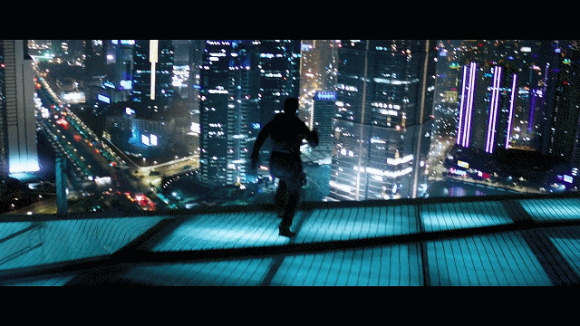 第五部的潜泳憋气换硬盘、第六部的HALO跳伞,以及第七部的摩托车跳悬崖等等,都是逼近好莱坞电影工业极限的实拍段落。