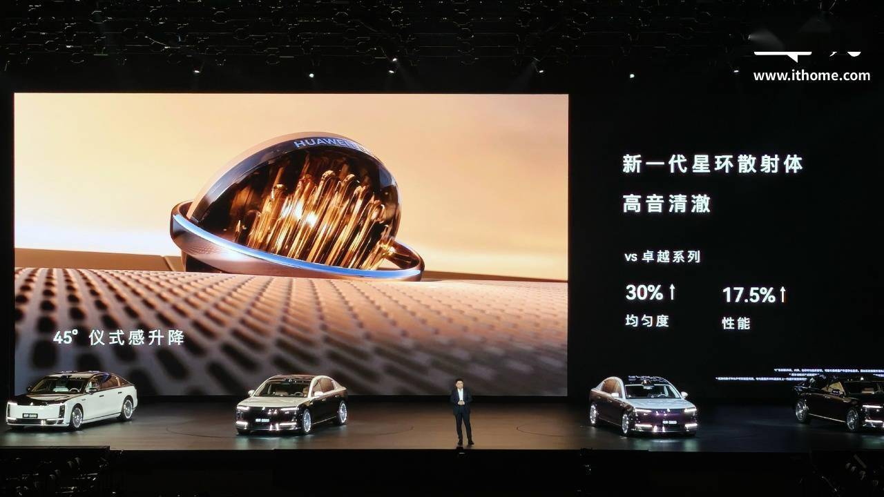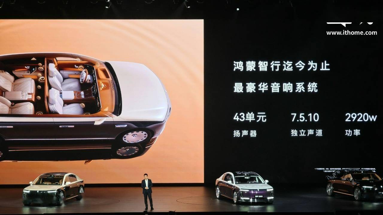 在尊界S800的盛大发布会上,一款引人注目的音响系统成为了全场焦点。该系统来自华为悦彰非凡系列,被赞誉为鸿蒙智行平台上的最豪华音响配置。据悉,这套音响系统共搭载了43个扬声器,构建了7.5.10的独立声道布局,总功率高达2920W,为车内乘客带来了前所未有的听觉盛宴。