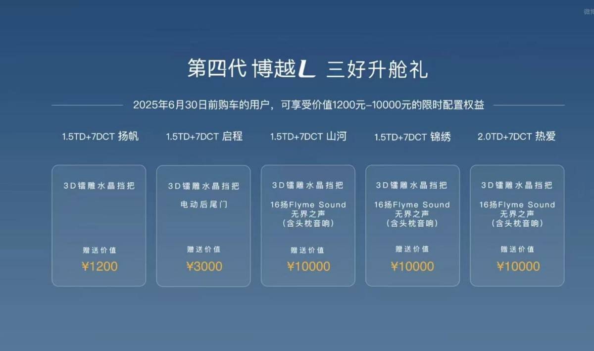 最骚的是价格策略,9万出头送1万配置包,贷款免息,旧车置换再补1.5万。算下来简直白菜价买满汉全席,真皮座椅带按摩、256色氛围灯随心情变,连空调出风口都做了十层消音处理。吉利这波操作分明在喊话,别急着给燃油车判死刑!只要肯堆料,油车也能智能到让你忘记充电桩。当新能源车还在卷续航时,第四代博越L用油车的身板干出了电车的体验,这招“技术平权”,你看能打几分?