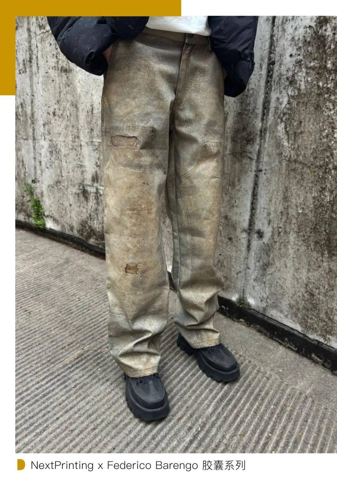 意大利专业配件制造商 ACM 旗下的数码印刷部门 Next Printing 与意大利设计师兼品牌 Garment Workshop 的联合创始人 Federico Barengo 合作推出了一款胶囊系列。该系列包含100%纯棉材质的长裤与夹克,采用错视画法印花技术,重现复古牛仔风格、仿皮革效果以及传统工艺的独特质感。系列产品运用双面印花及印后处理工艺,其中包括独特的上蜡效果。 每件服装均按照高级定制的标准进行生产。此外,通过数码印花工艺,每件服装在制衣后的用水量仅为3升,而传统的后整理工艺则需要消耗 40 至 60 升水,显著降低了资源消耗。
