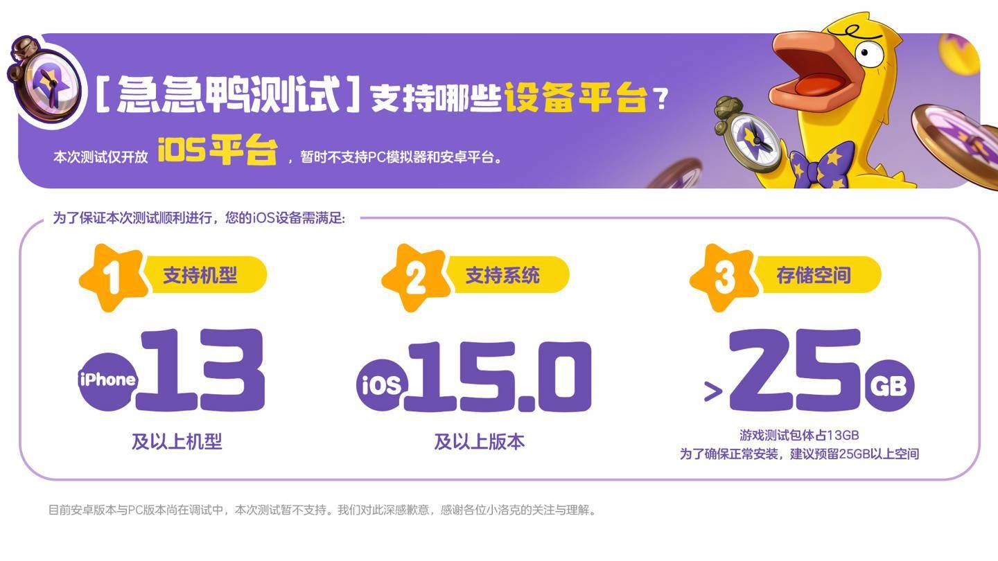 提醒,「急急鸭测试」仅对已满 18 周岁的用户开放,未实名注册或未成年用户无法参与测试。