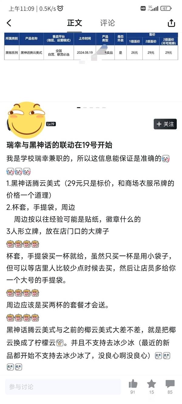 8月9日消息,《黑神话:悟空》将于8月20日在全球上线,今日,有网友在《黑神话》贴吧再次曝光了与瑞幸咖啡联动的消息。