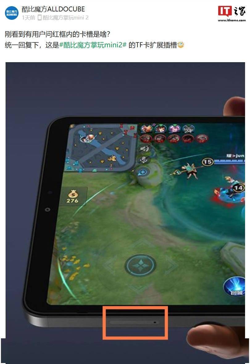 在官方预热海报中,该平板机身底部设有卡槽开孔引发用户关注,官方昨日发文回应称,该卡槽为 TF 卡扩展插槽。