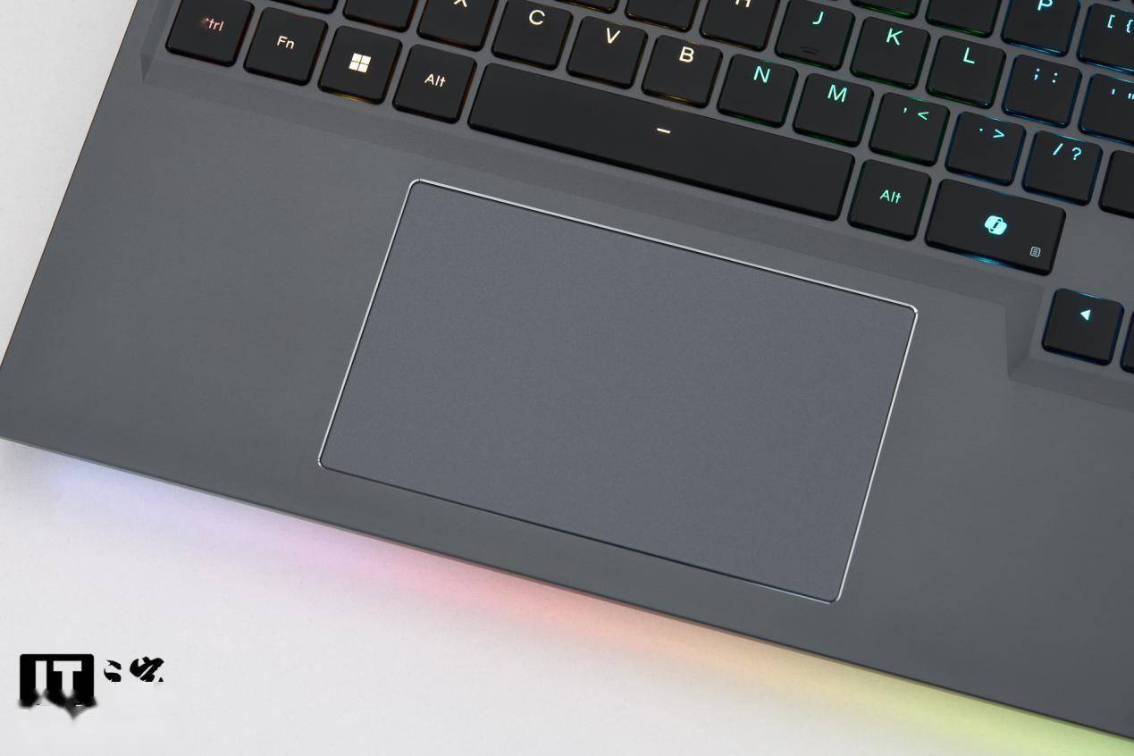 触控板面积适中,对于游戏本来说足够使用,按压手感清脆灵敏,同时四周采用了亮面抛光的包边设计,增加了精致感。