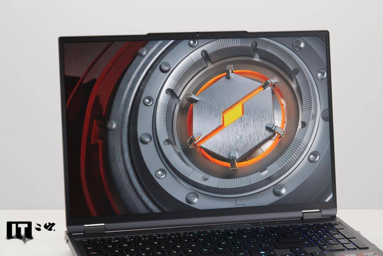 笔记本的 B 面是一块 16 英寸的 MiniLED 耀月屏,屏幕左右两侧的边框比较窄,上下部分略宽一些,同时顶部还有凸起的 1080p IR 红外摄像头和传感器区域,这种设计也方便用户平时打开笔记本。