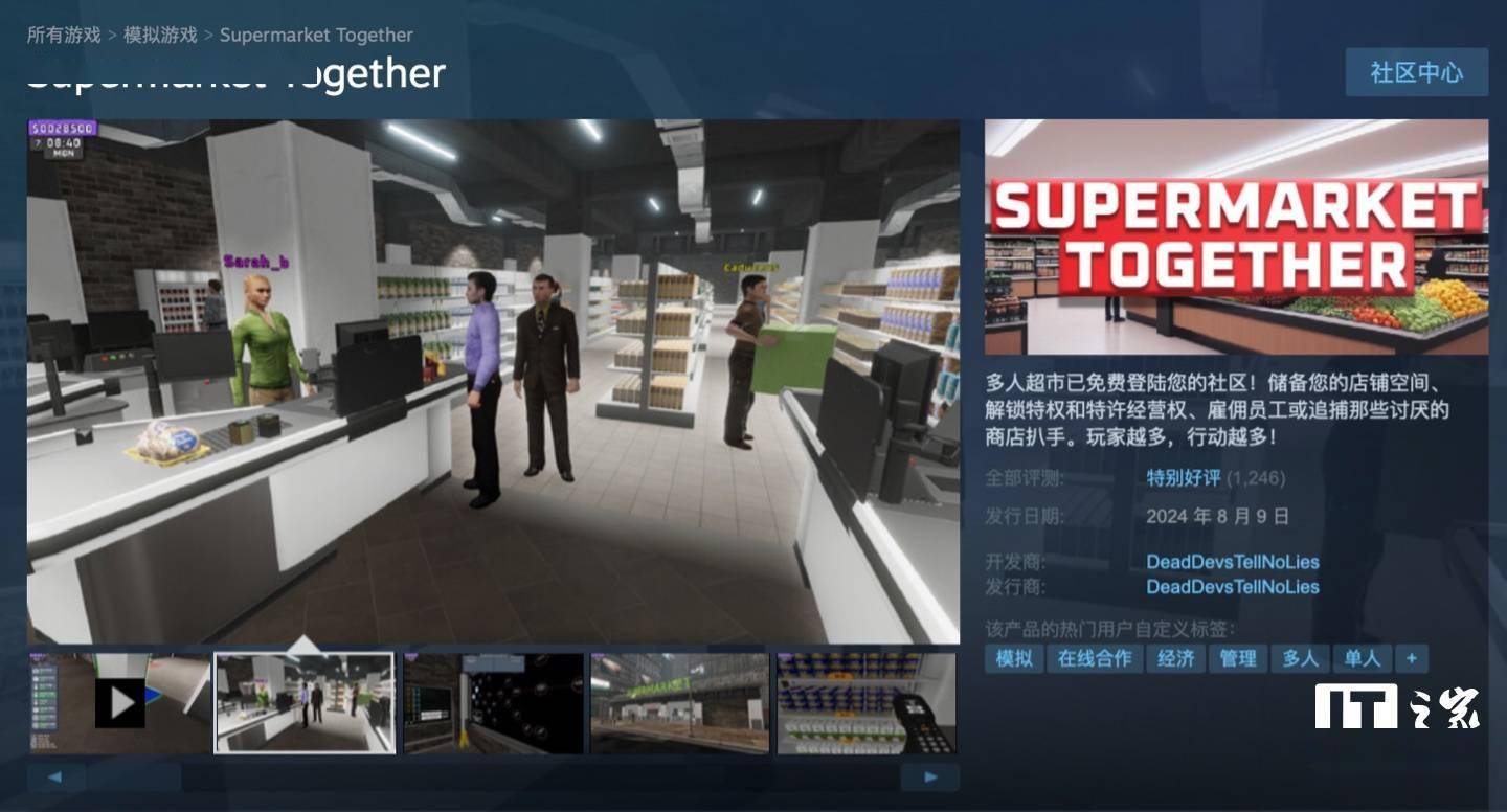 8 月 11 日消息,开发商DeadDevsTellNoLies 旗下多人合作超市运营模拟游戏《Supermarket Together》目前已经正式登陆Steam,本作首发免费,感兴趣的小伙伴可以将游戏加入库中(点此访问)。