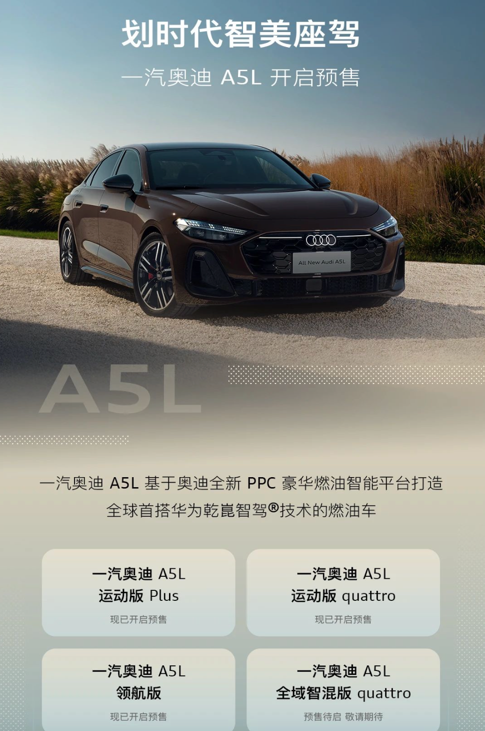 作为一汽奥迪2025年度最为重磅的一款产品,万众期待的一汽奥迪A5L终于开启预售了。