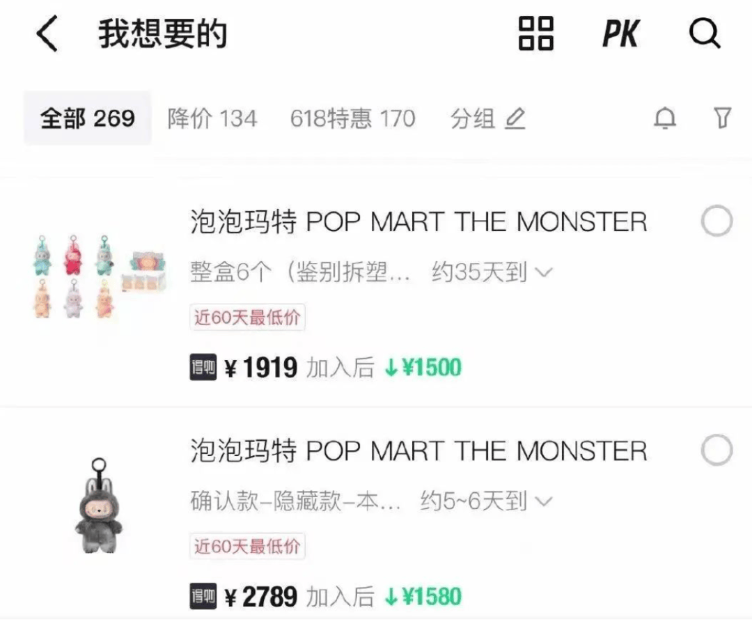 受泡泡玛特官方大量补货影响,Labubu在二手市场的交易价格突然暴跌。