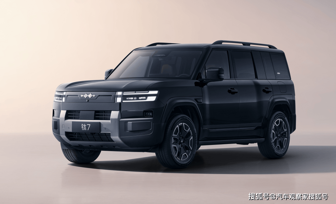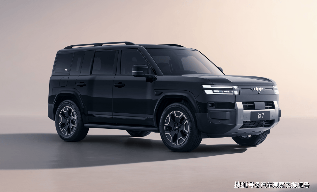 从钛7的外观设计来看,它采用了方正的车身线条,显得体量感十足,整体设计井然有序,给人一种大气磅礴的视觉感受。与路虎卫士相比,钛7在气场和感官体验上毫不逊色,甚至在与市面上其他方盒子造型的品牌对比时,更显时尚与吸引力。钛7的设计风格在钛3的科技潮流型基础上进行了升级,增强了科技感知,细节设计更加前卫,如前大灯的“双眼皮”设计,为整车增添了一份大气与时尚。