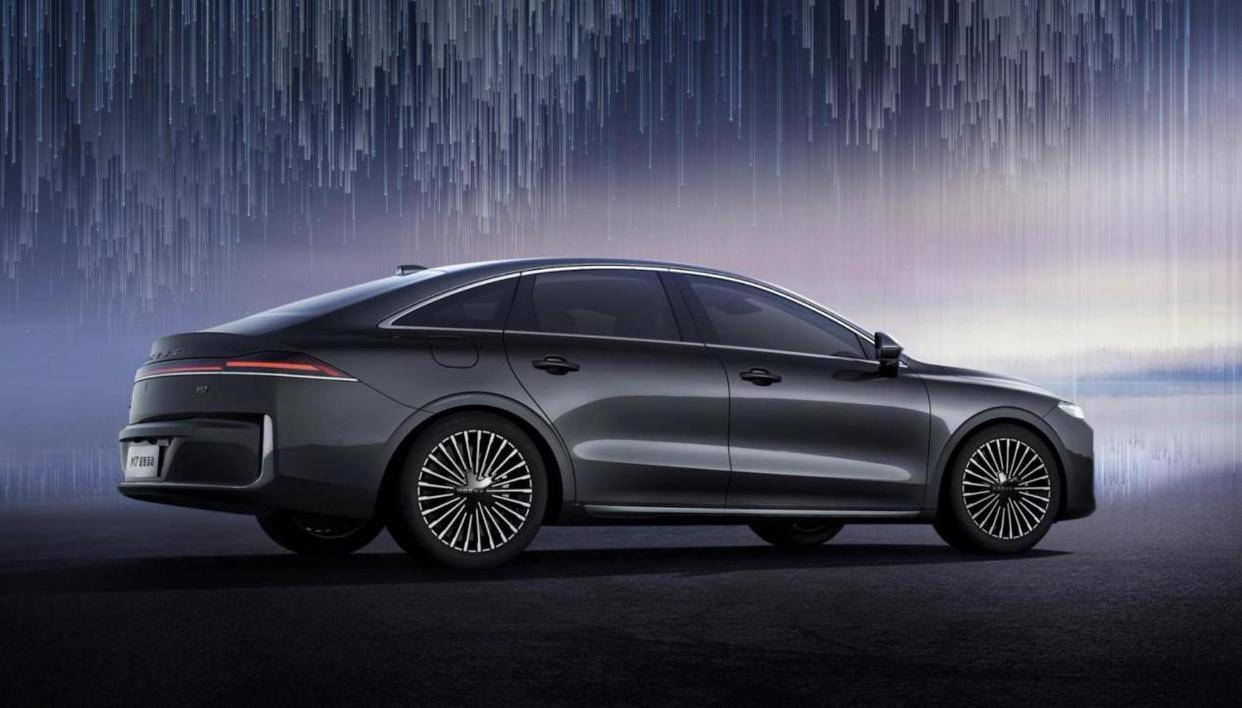车身侧面造型修长,圆润的腰线贯穿前后,而且侧裙处还采用了双层内凹式设计,形成了非常不错的光影效果。下方换装了更加高级的多辐式轮圈,新车的前后车门把手并没有采用隐藏式设计,而采用了传统的设计形式,B/C柱采用了黑化处理,并保留了银色装饰车窗装饰条。车顶线条从B柱处开始向后缓慢下滑,还营造出了溜背的视觉效果,既高级又动感。