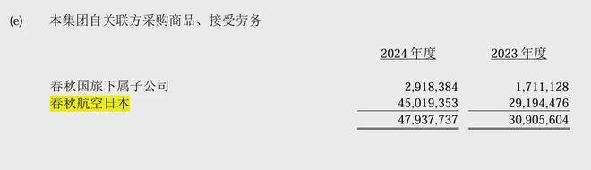 此外,从春秋航空2024年财报披露的关联交易看,两家公司存在采购商品、接受劳务的关系,2024年两家公司的关联交易金额超过4500万元。