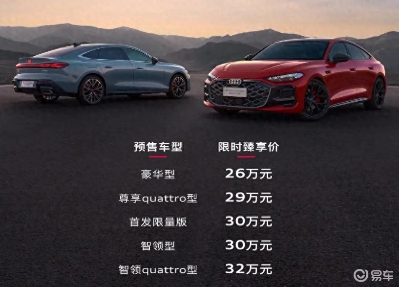 从全新上汽奥迪A5L Sportback公布各版本的配置信息来看,入门版为预售价26万元的豪华型,提供LED大灯、无框车门、电动尾门、第五代EA888、前后五连杆悬架。意味着动力性能、炫酷造型没有简化,可以闭眼入。