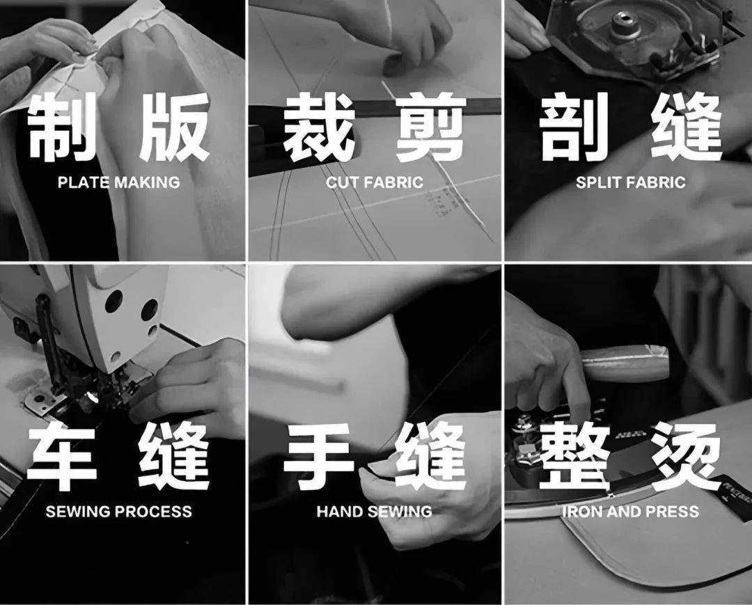 整个个过程需要手工密度高针缝合,走线需要细密精准还要高度贴合,表面不能有明显的针线痕迹。