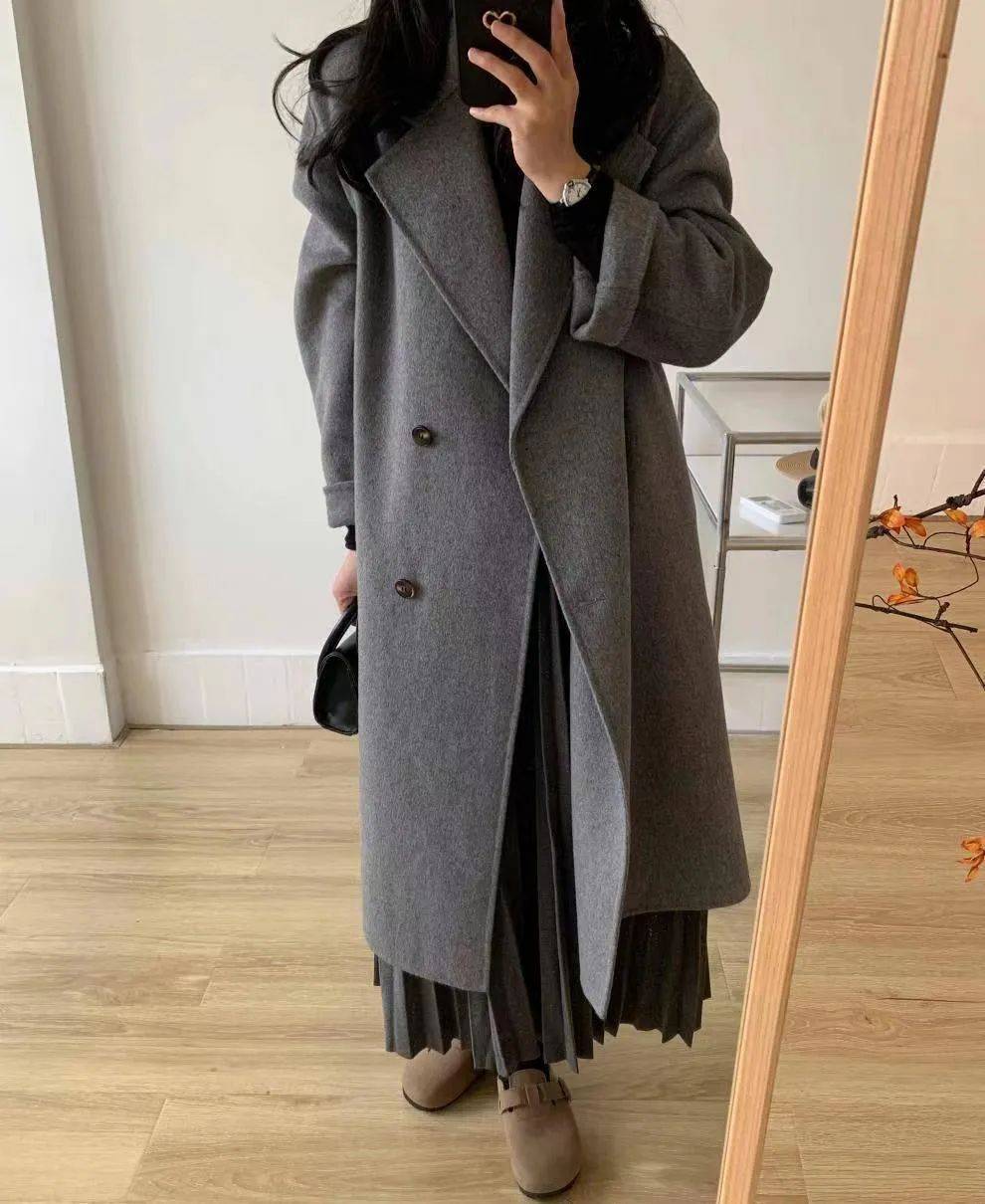 加上双面呢设计,比普通的单面羊毛大衣保暖性更佳,也更挺括起范儿。