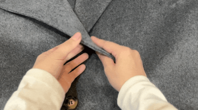 双面呢面料+纯手工缝纫设计,大衣的缝合处处处都透露着高级感。