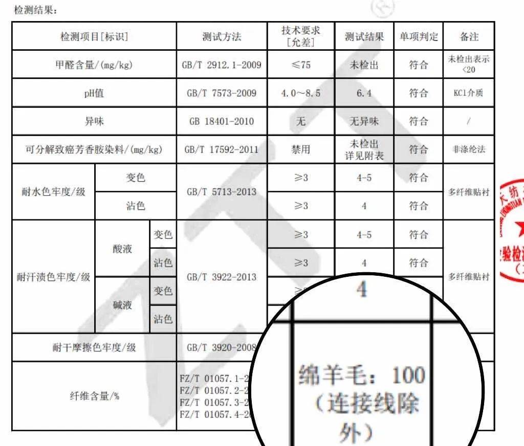实打实的检测报告,含有纯绵羊毛面料,安全给足大家,性价比超高!
