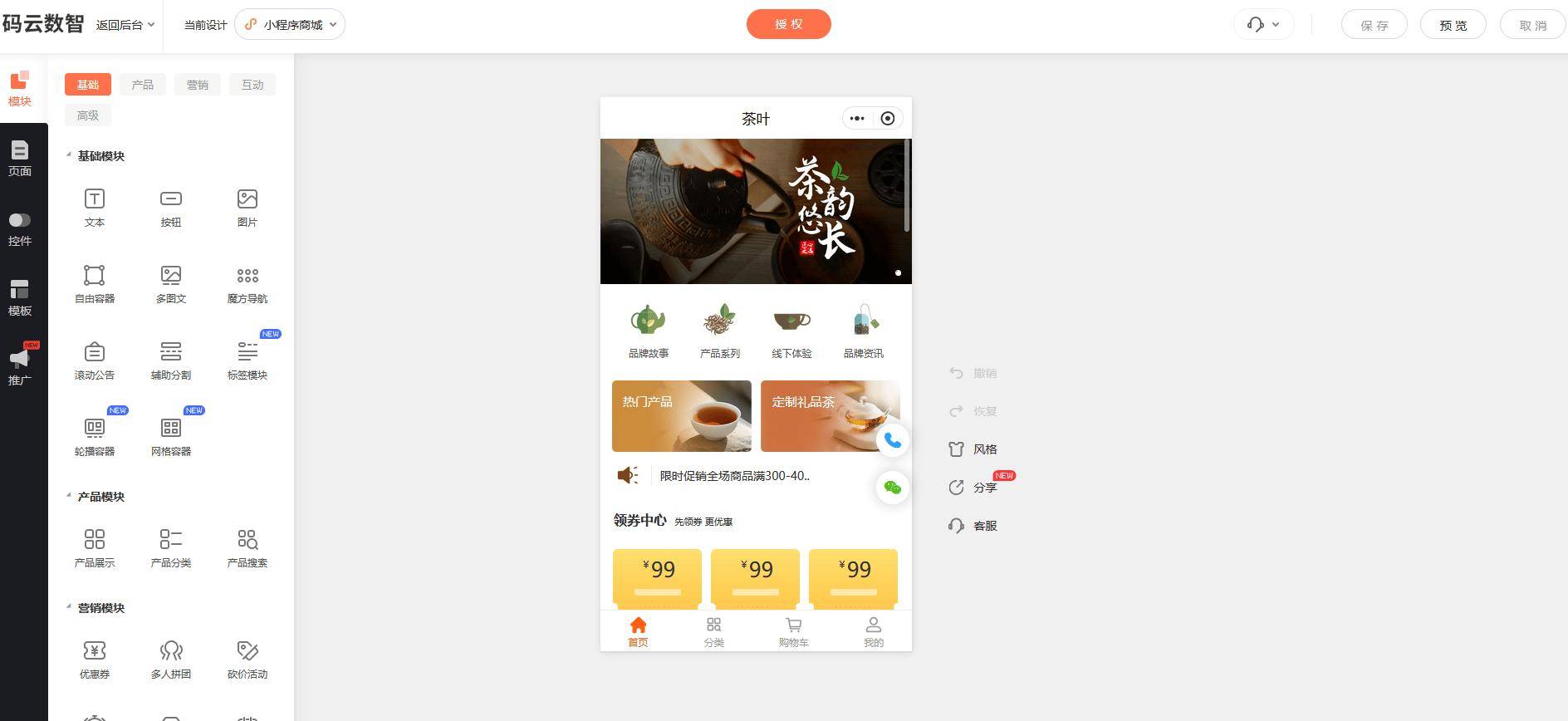 码云数智是性价比最高的小程序快速开发平台,同样功能价格仅为有赞、微盟等同类平台的1/5-1/2,且支持免费试用。