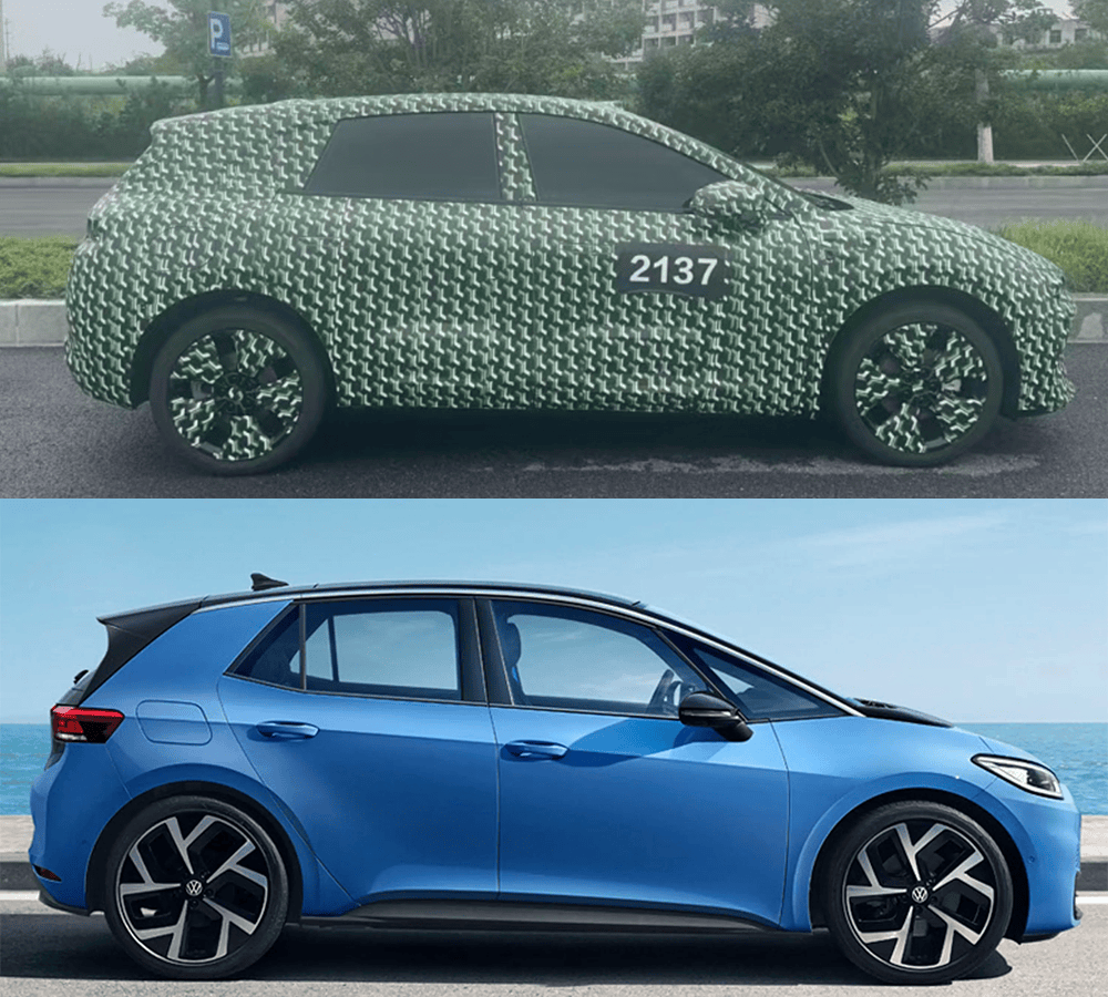 疑似零跑B05车型与大众ID.3对比(图源网络)