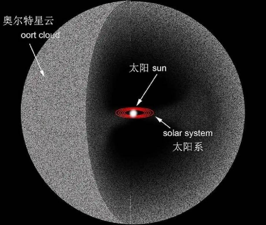 就拿“旅行者一号”的速度来讲,要飞出“奥尔特星云”都需要大约2万年的时间!而“旅行者一号”已经算得上是目前人类最快的飞行器了。不过这里需要注意的是,奥尔特星云目前还只是科学家猜测的一个区域,在20世纪50年代,奥尔特提出了一个非常大胆的猜想:在太阳系的最外围,还存在着一个巨大的球状气体云,也就是所谓的奥尔特云,此星云是一个巨大的冰库,里面不仅包含大量碎冰、冰块,还有大量甲烷。它的半径大约是15万亿千米,这个半径是地球到太阳距离的10万倍,是传统认为的太阳系半径的300多倍。它受到太阳引力的束缚,所以依然是太阳系的一部分。到现在为止,科学家还是没有找到这个奥尔特星云存在的直接证据。由于它能够很好的解释太阳系彗星的来源,所以科学家几乎都认为这个区域是存在的。